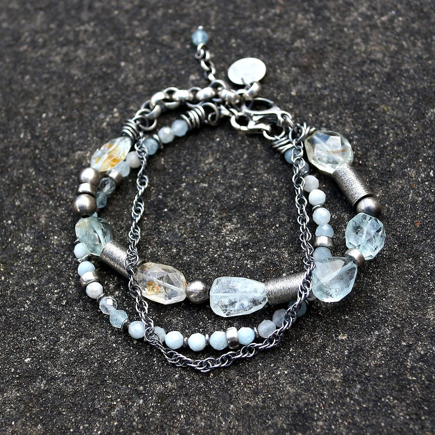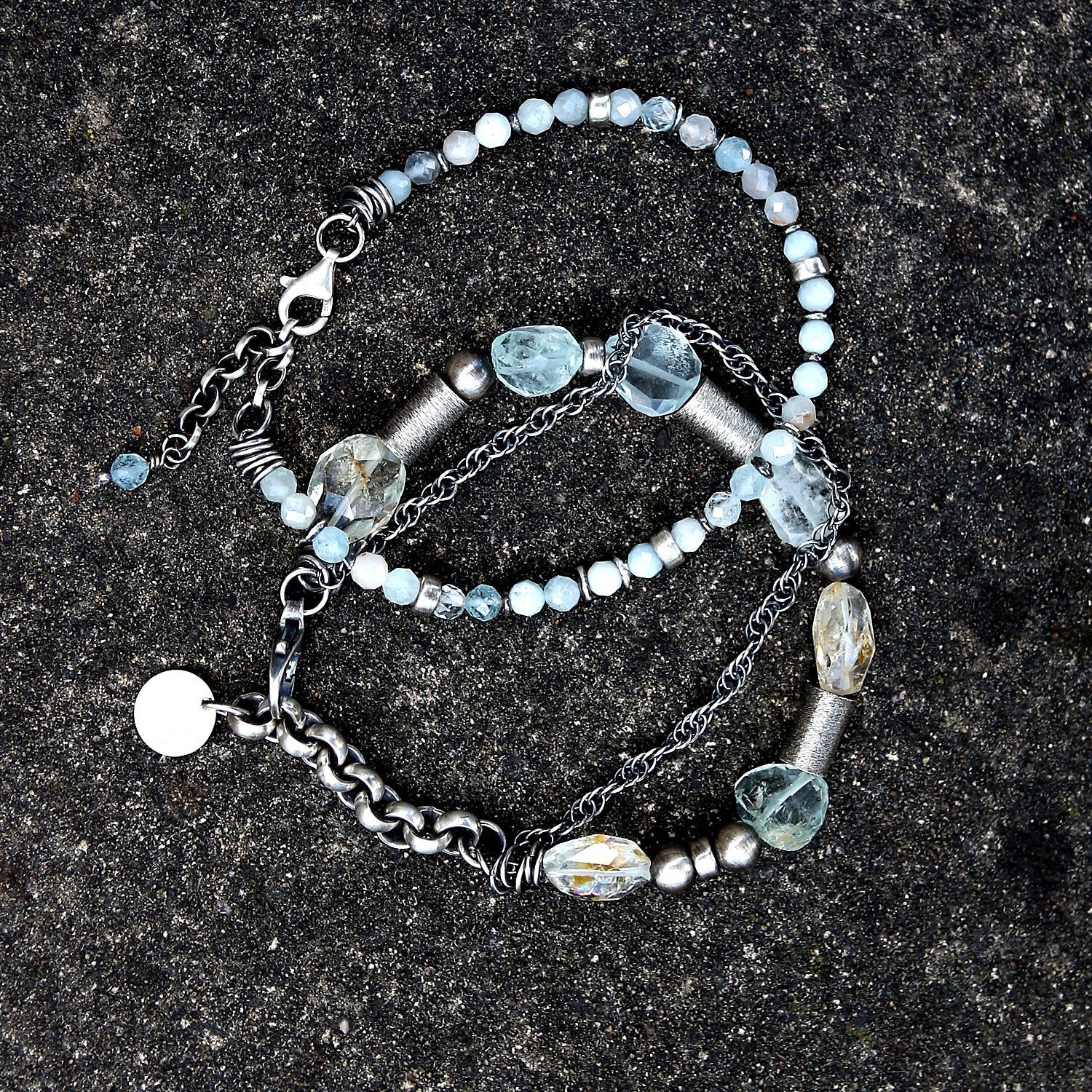 Aquamarine & Sterling Silver Two Bracelet Set