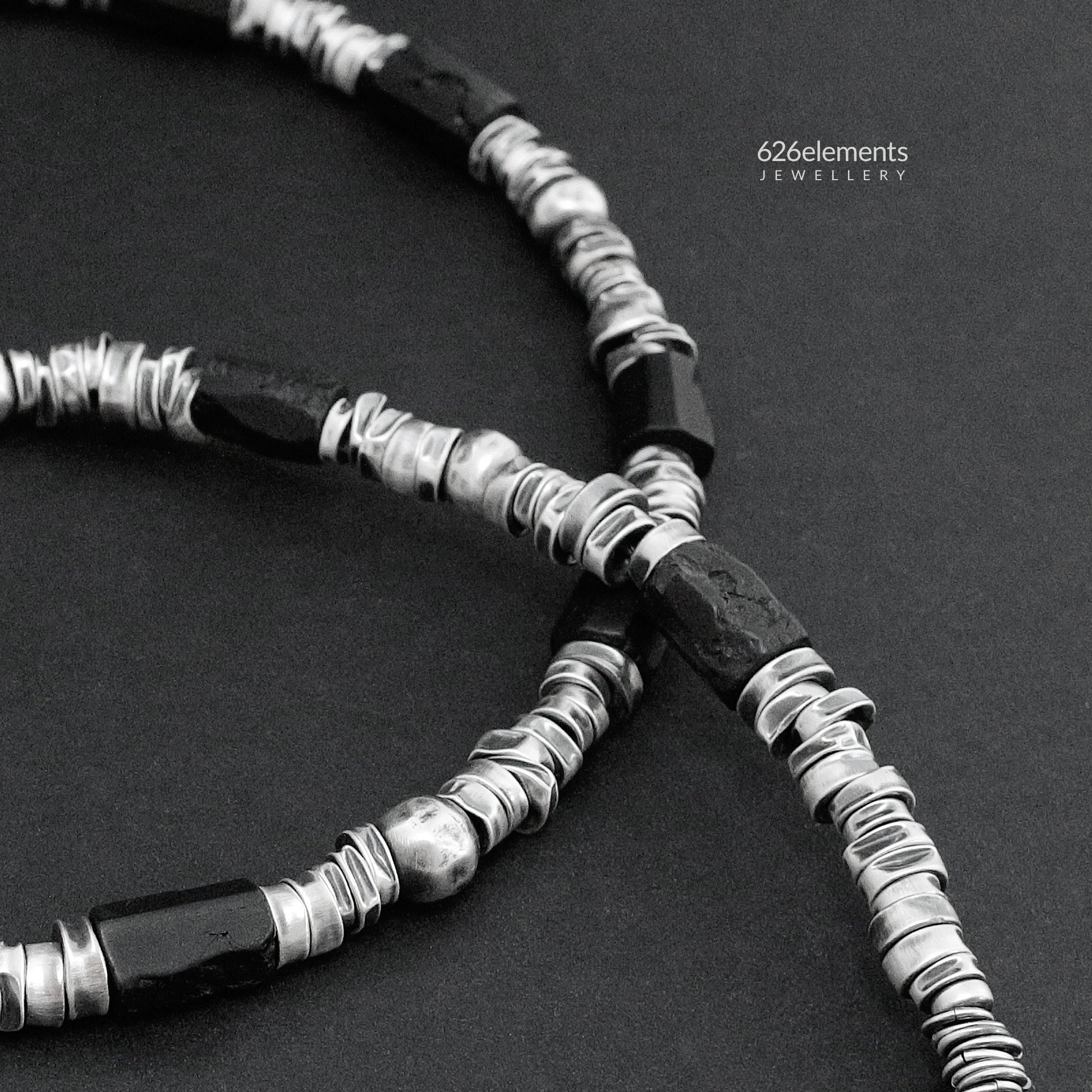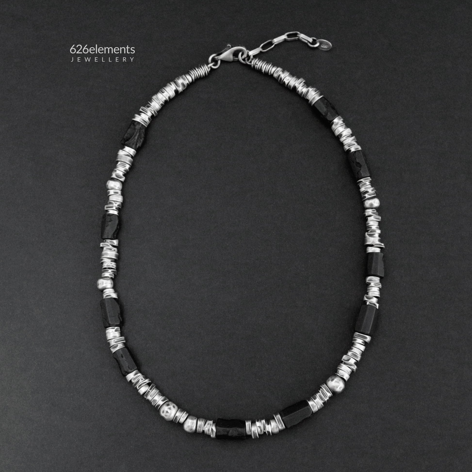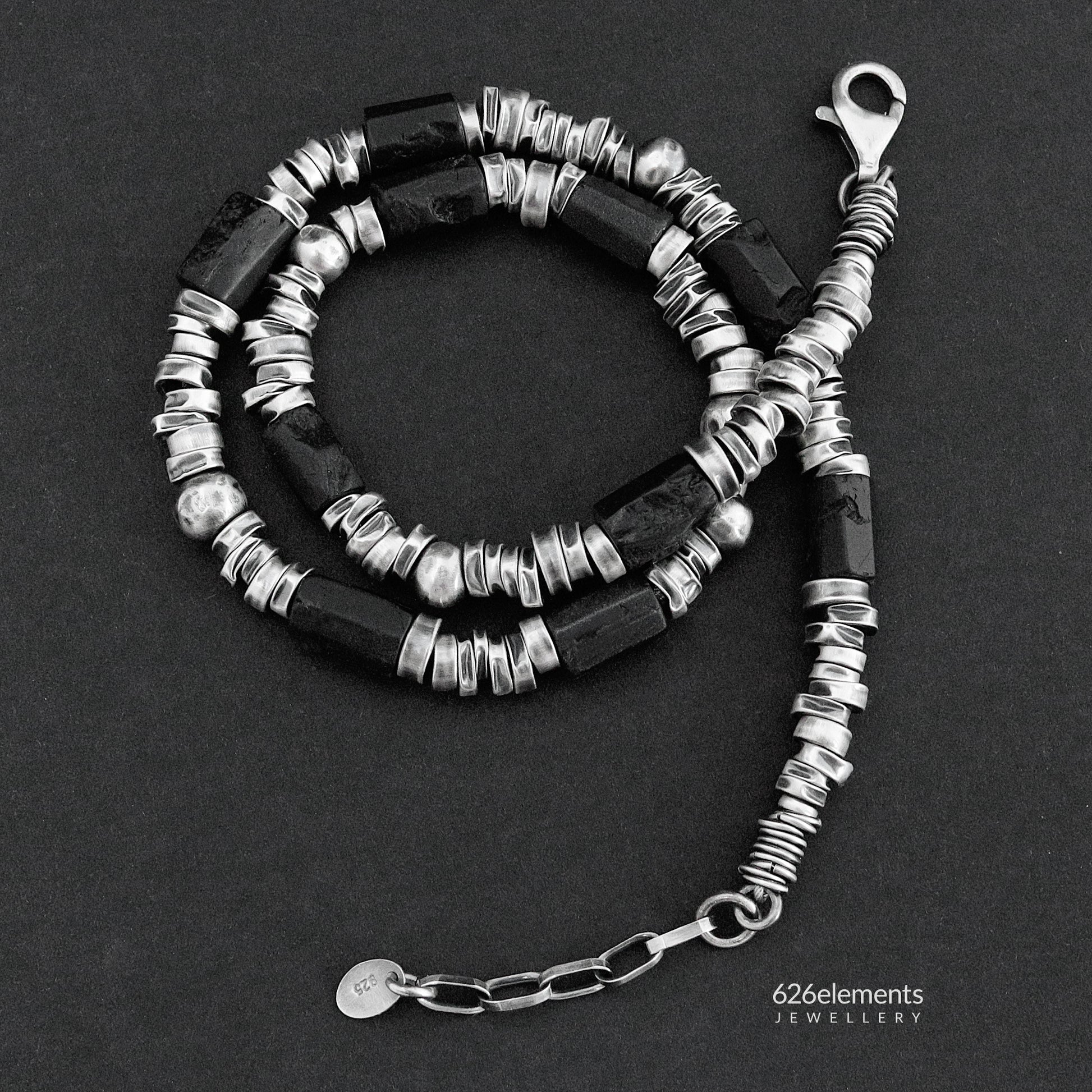 - Black tourmaline and oxidised (darkened and polished) 925 sterling silver necklace