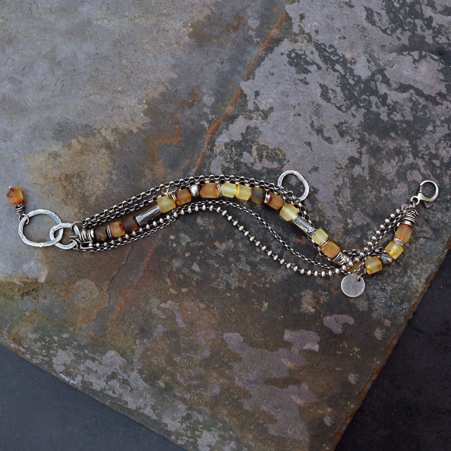 Bright Amber Multi Chain & Hammered Circles 925 Silver Bracelet