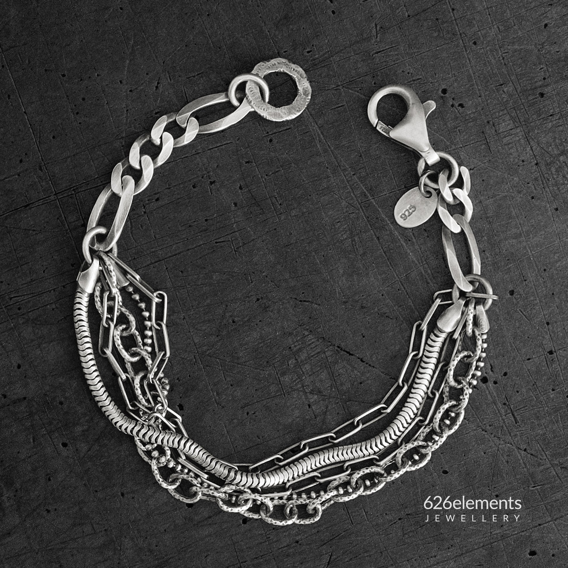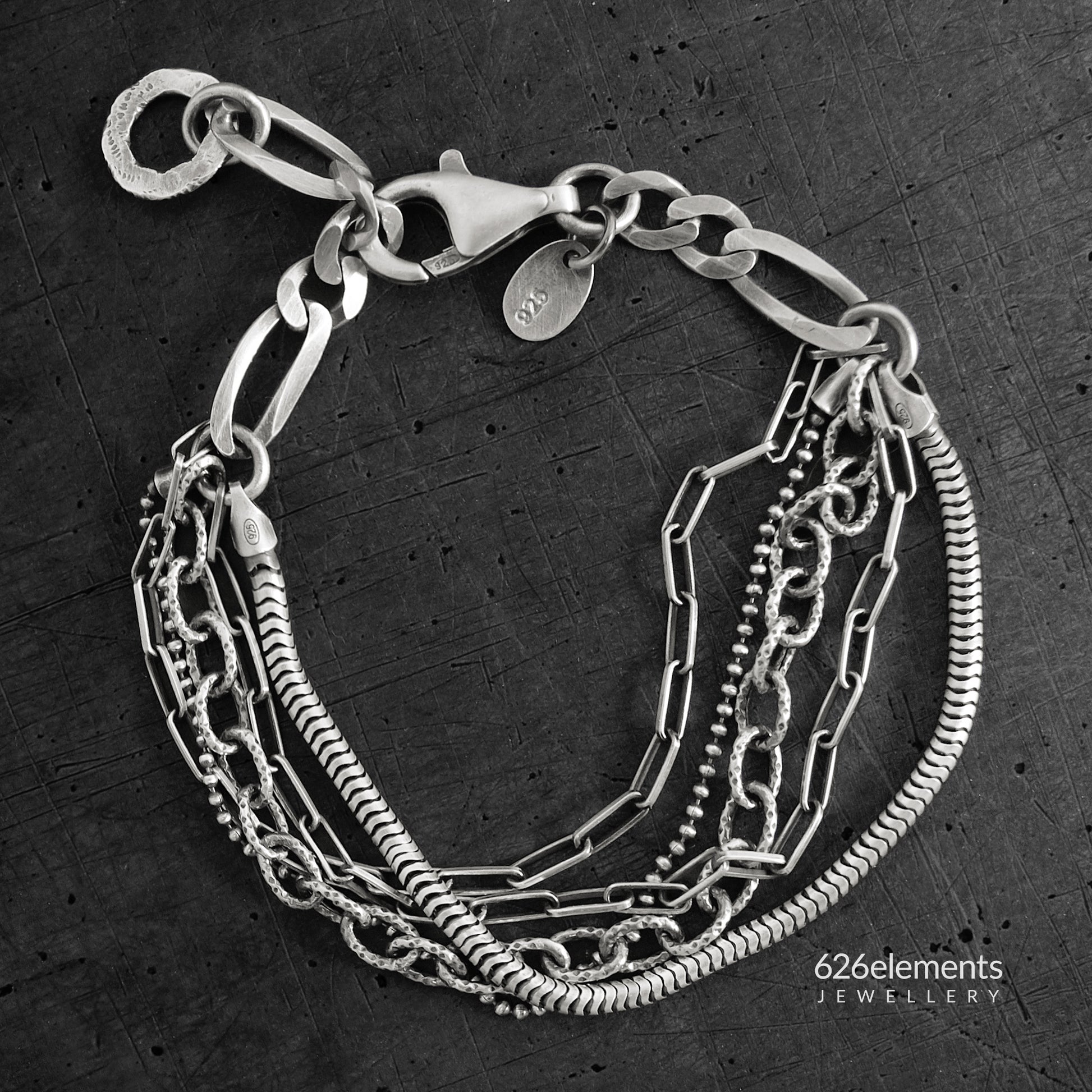 - A delicate women's multi-strand bracelet made entirely of oxidised solid 925 sterling silver