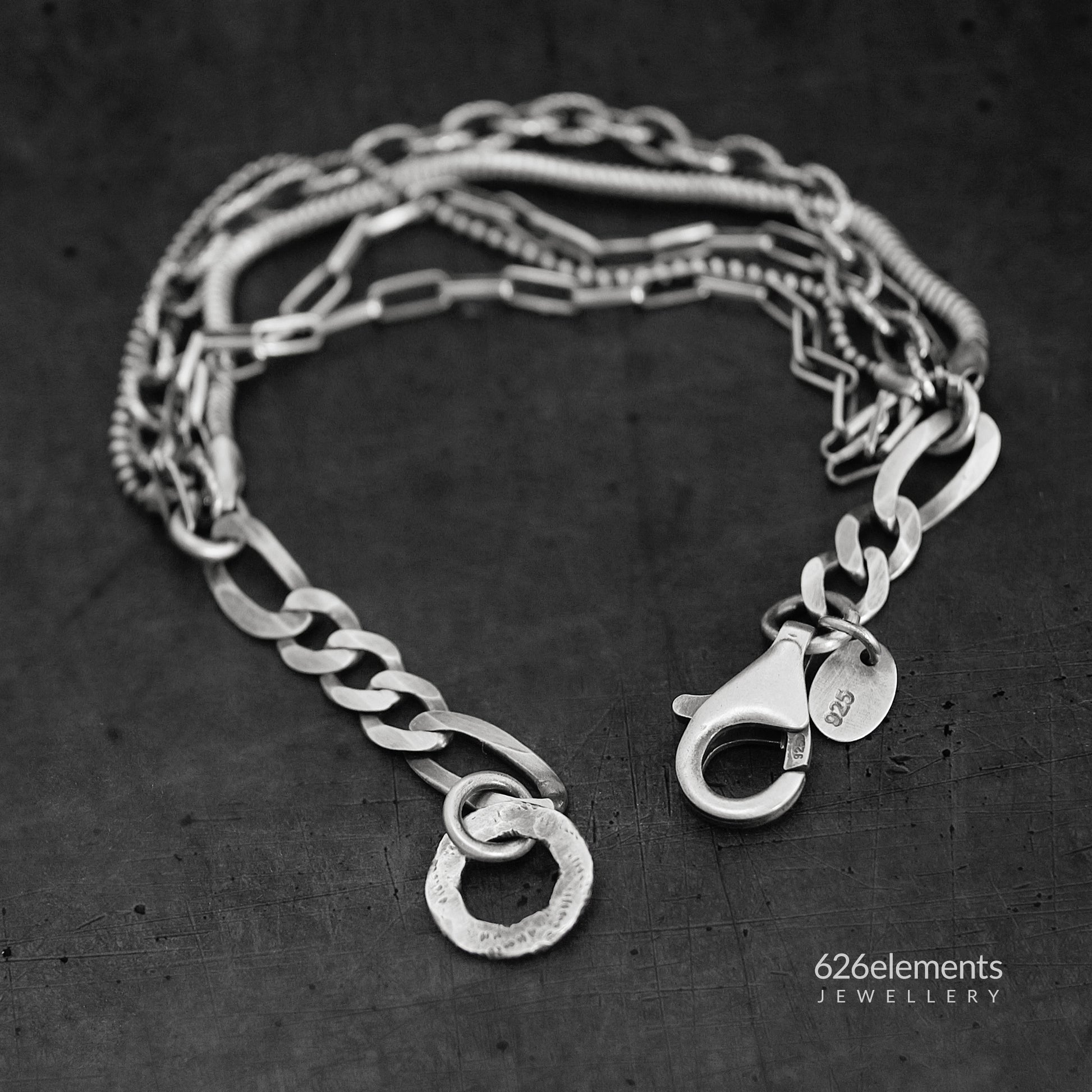 Delicate Oxidised 925 Silver Multi-Chain Bracelet