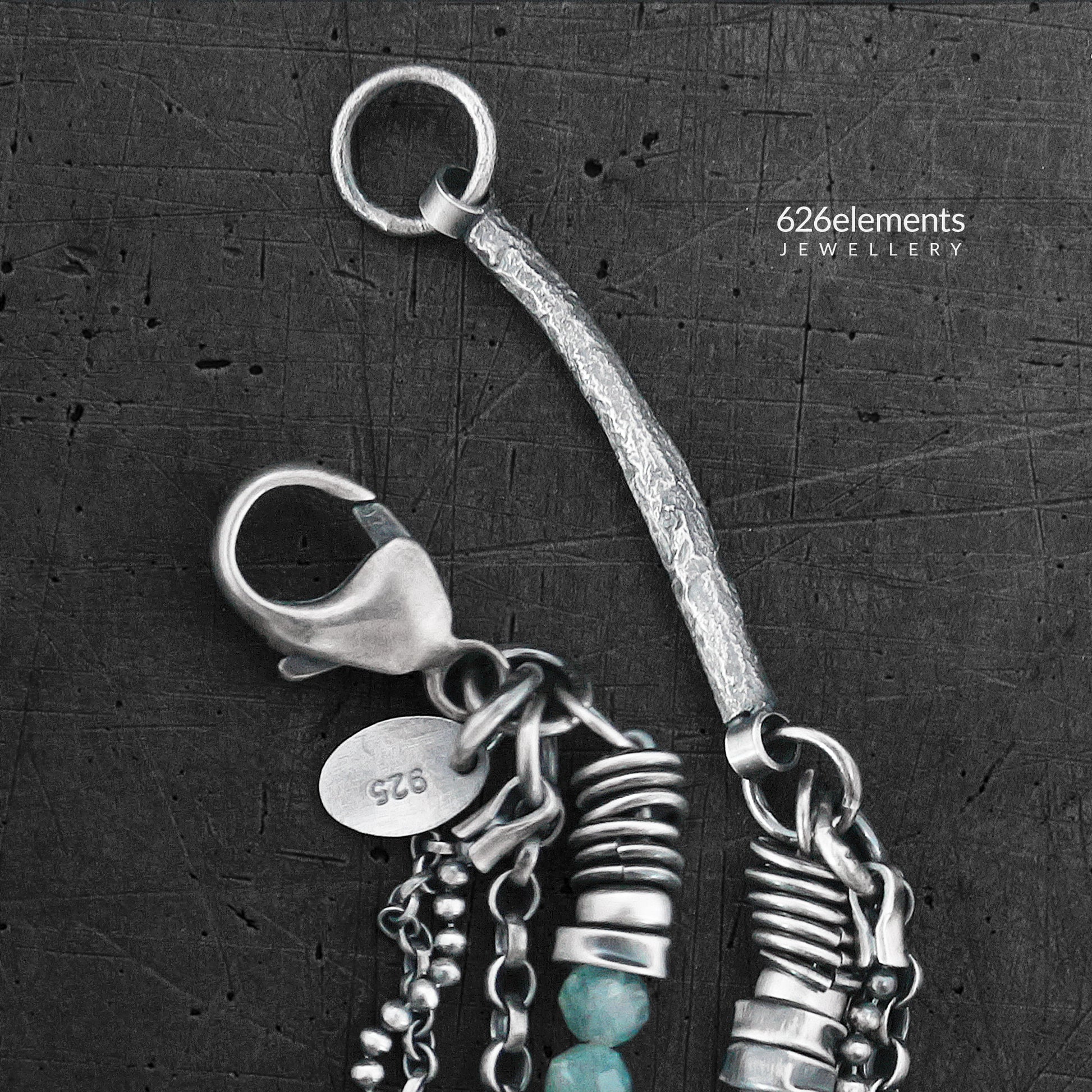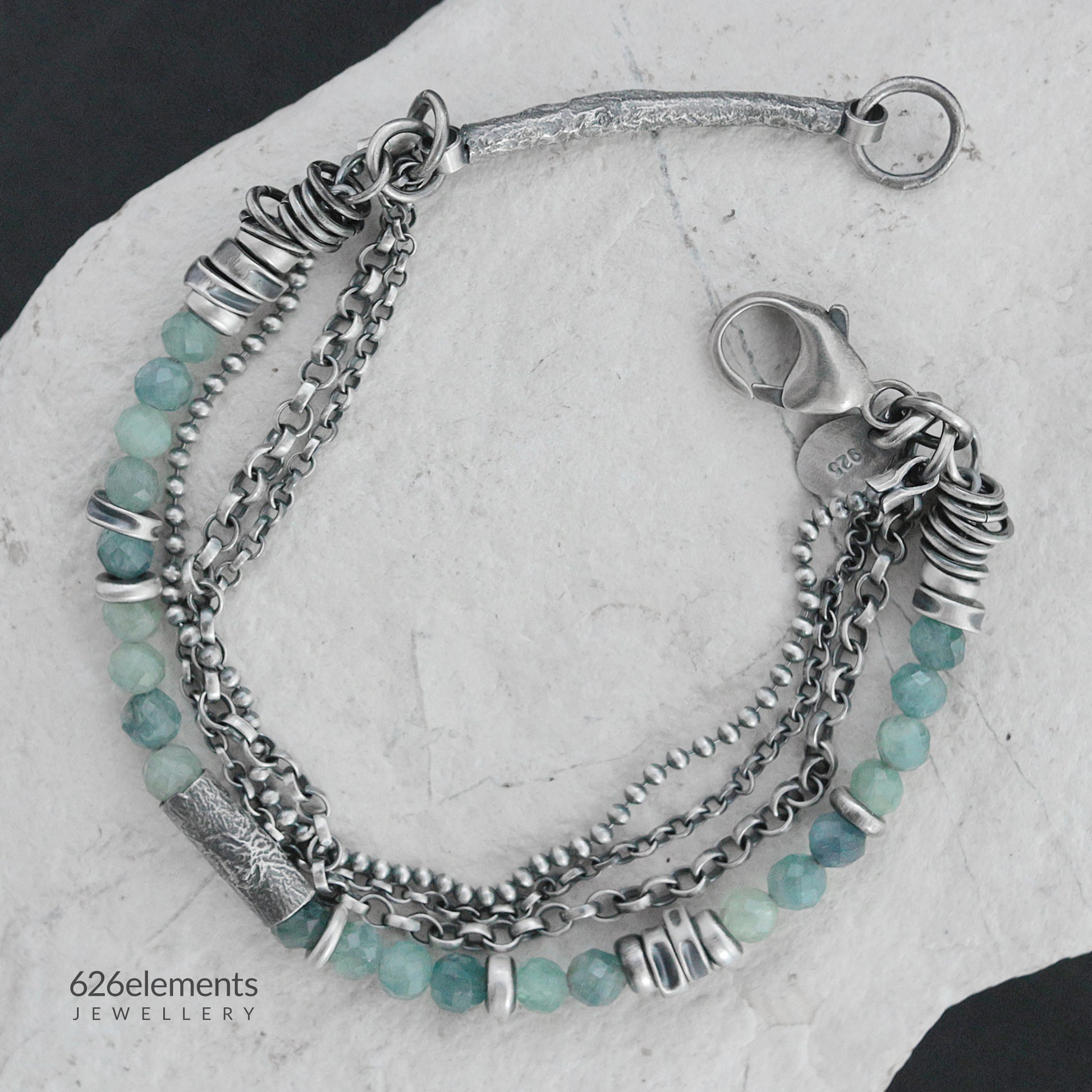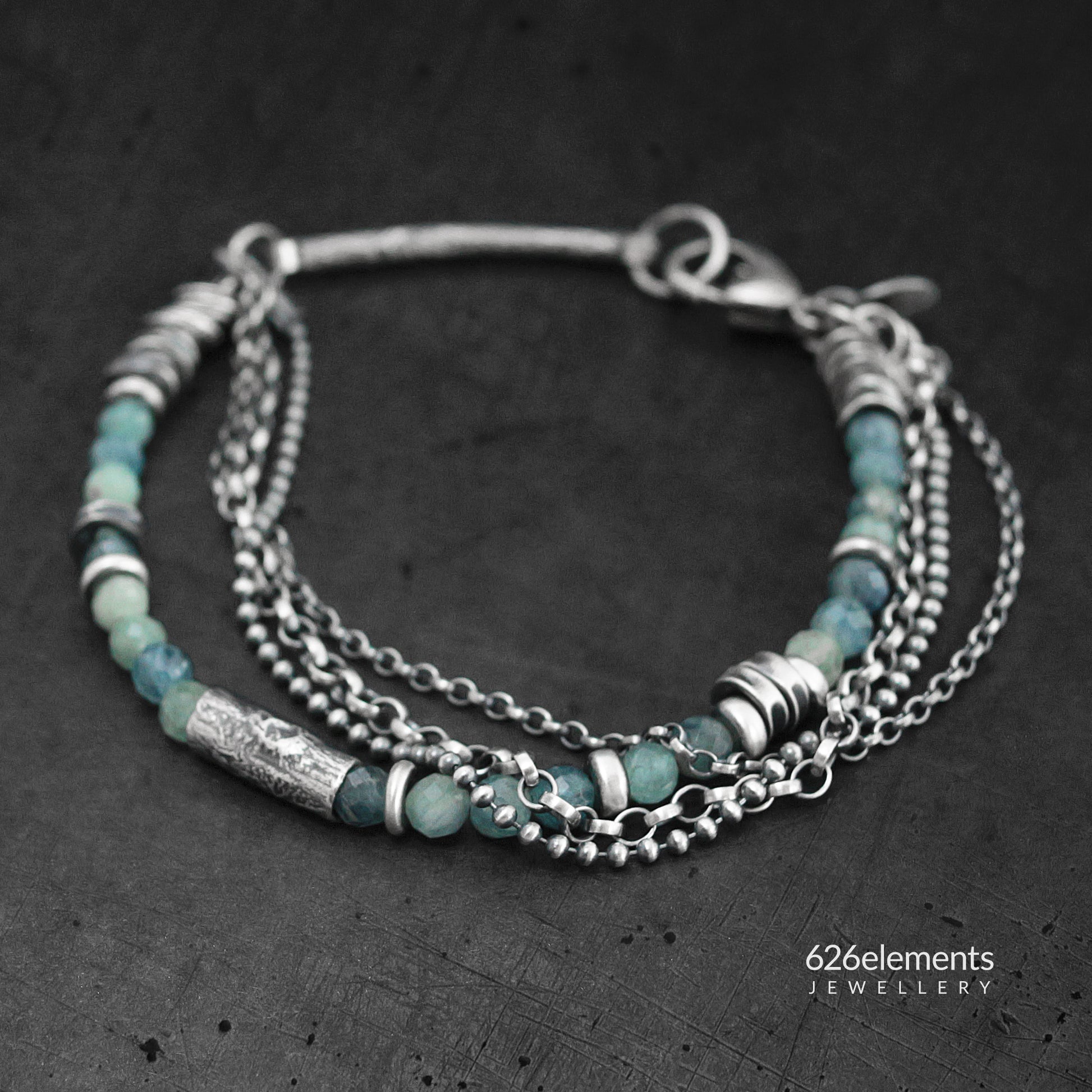 - Delicate, multi-chain bracelet made of dusky green and blue kyanites and oxidised sterling silver