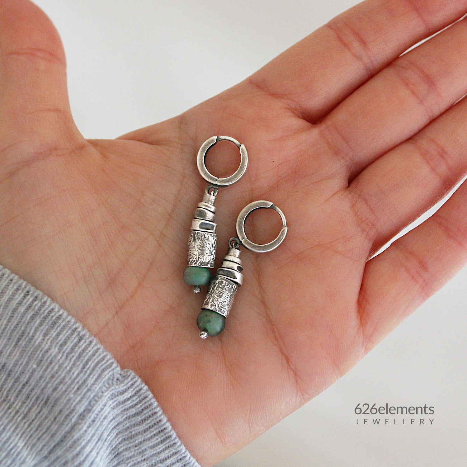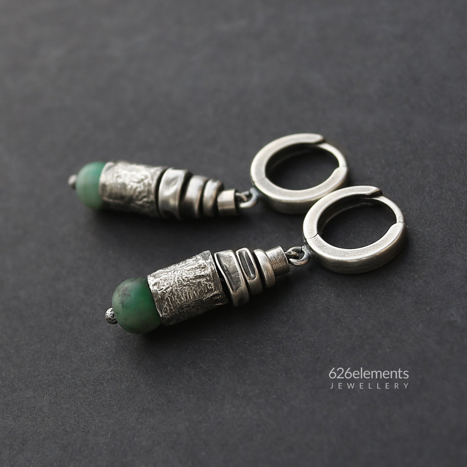 - Delicate green emerald and blackened (oxidised) sterling silver (925) earrings