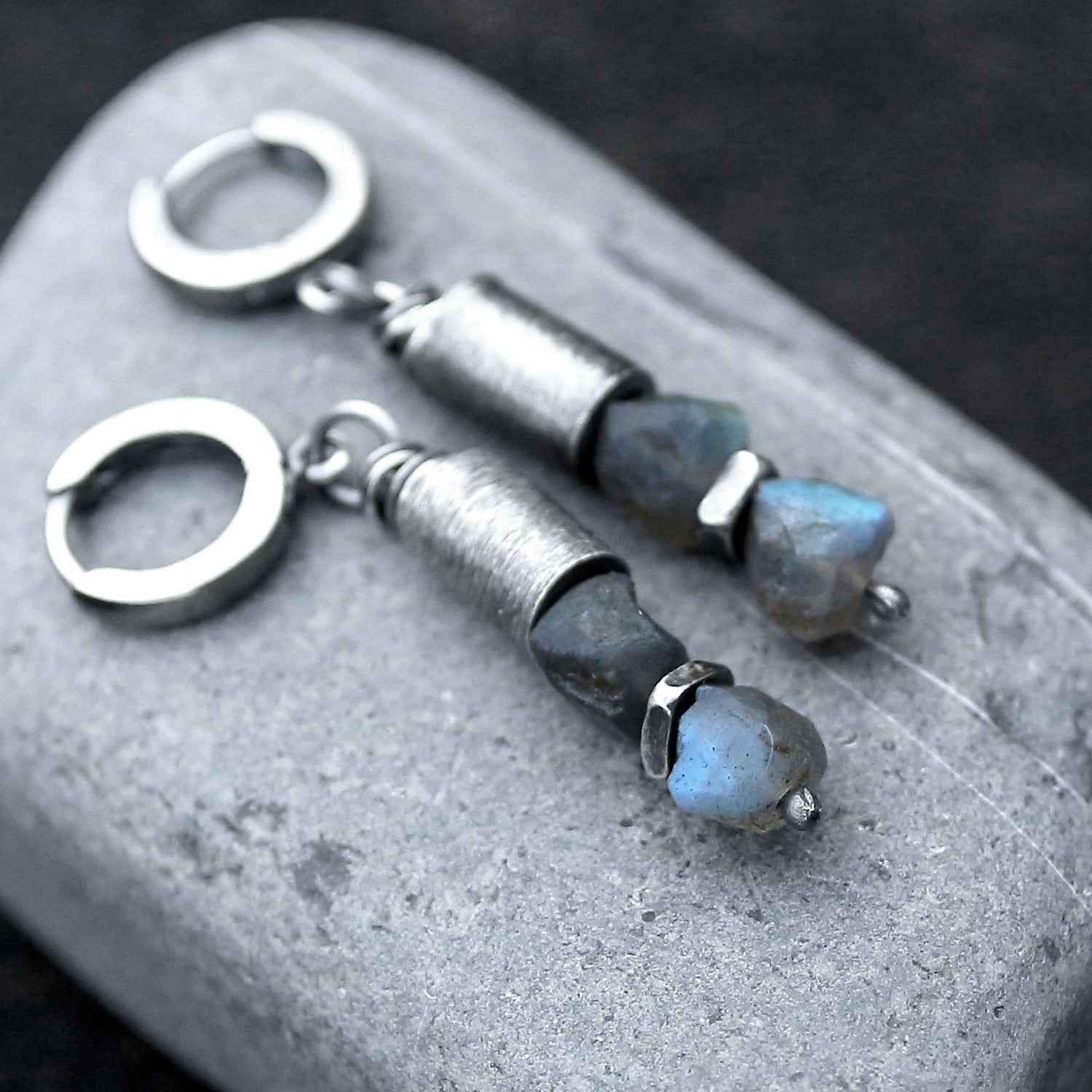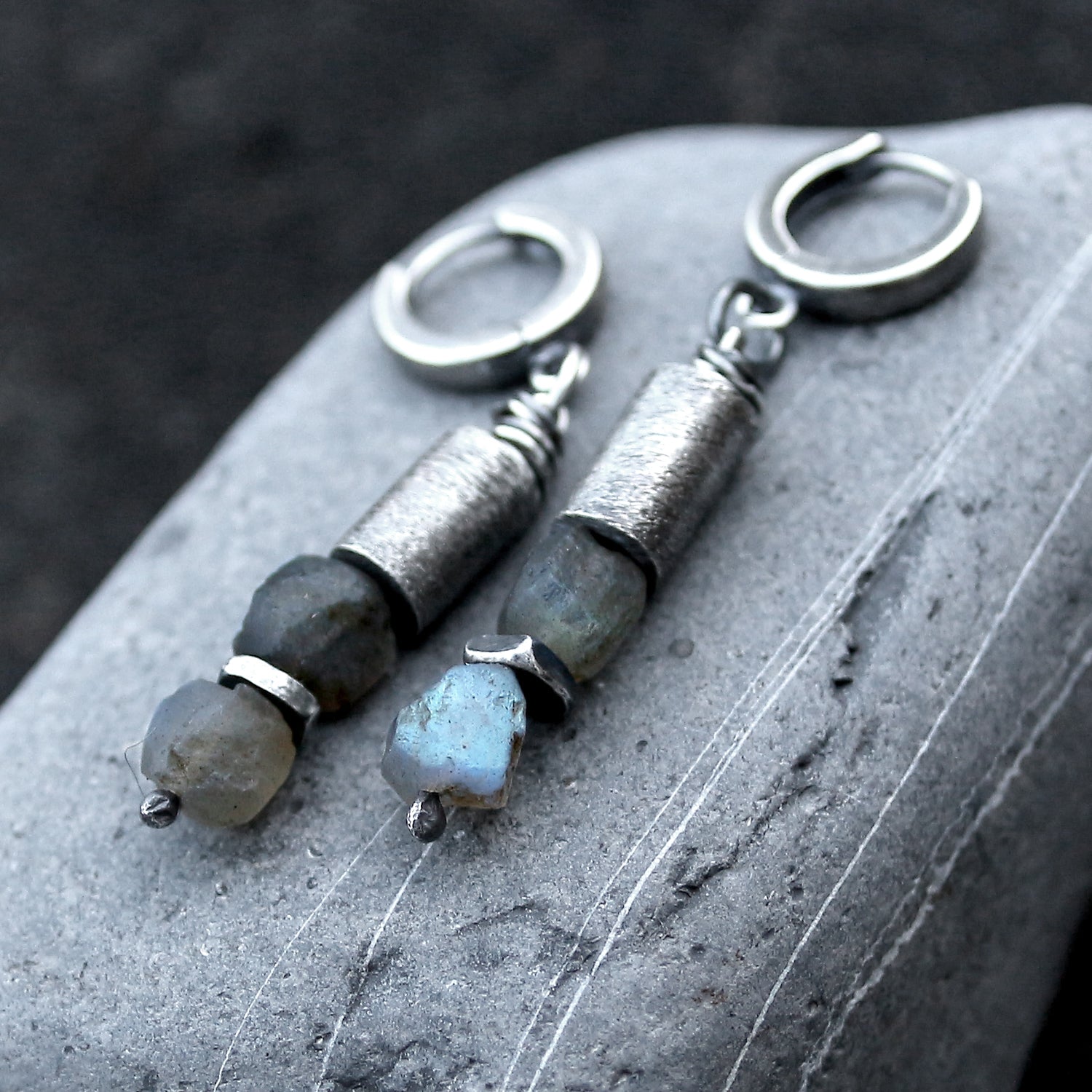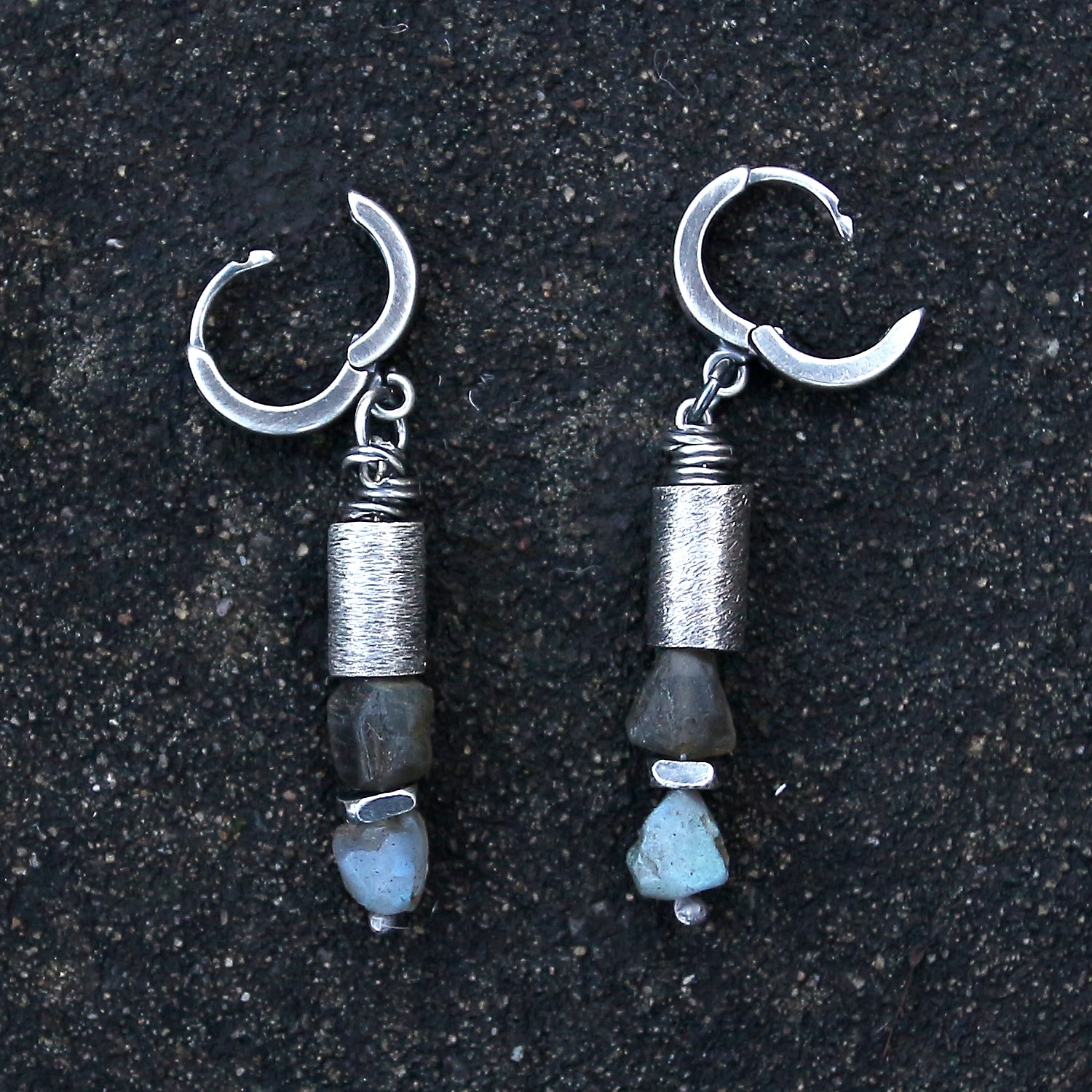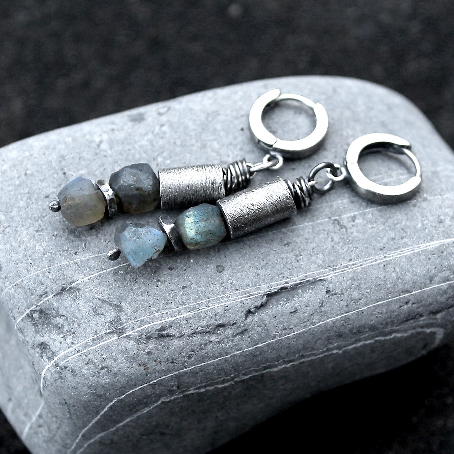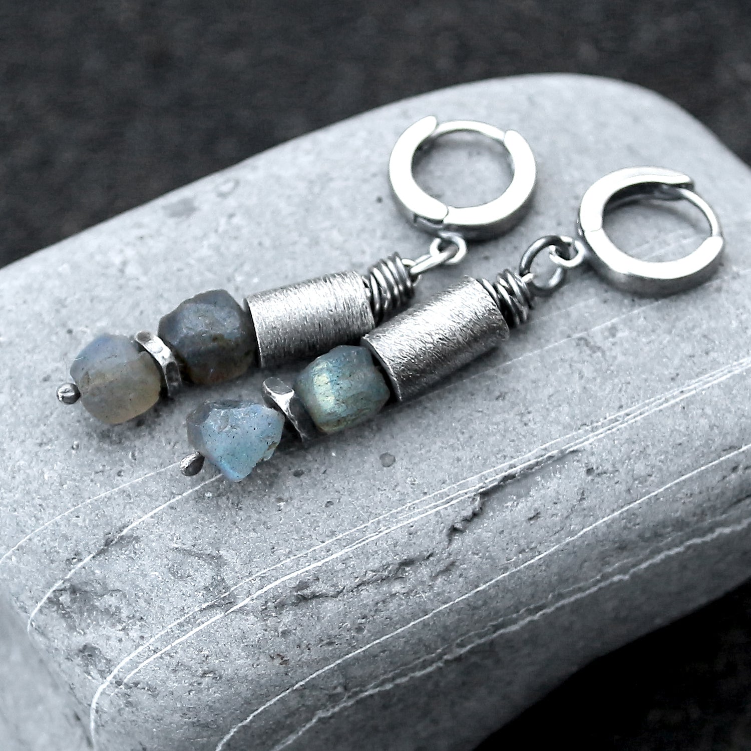 Labradorite, 925 Silver & Brushed Tube Dangle Earrings
