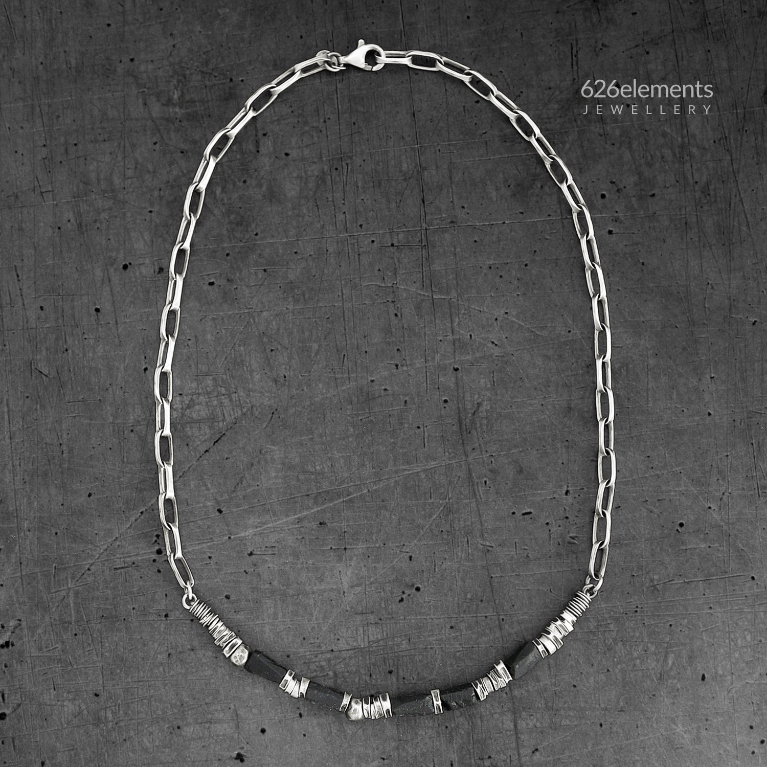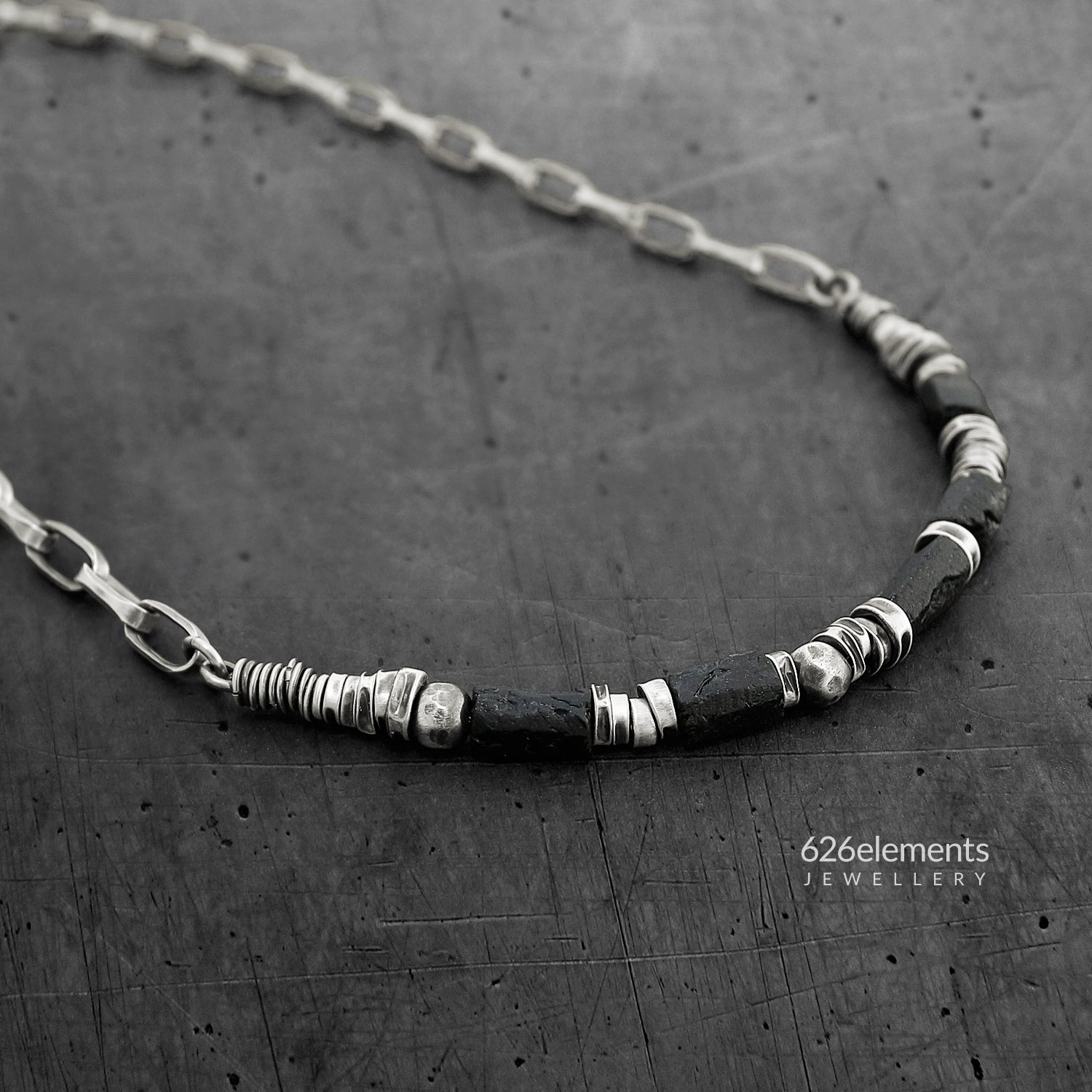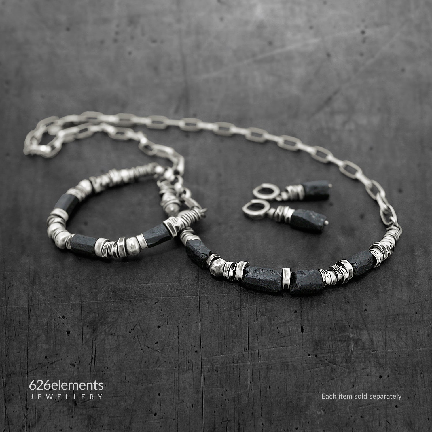 - Men's black raw tourmaline and oxidised (blackened and polished) sterling silver necklace
