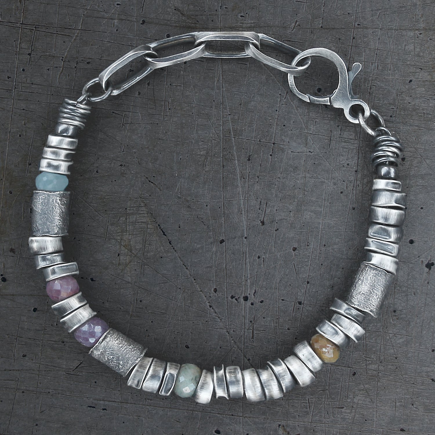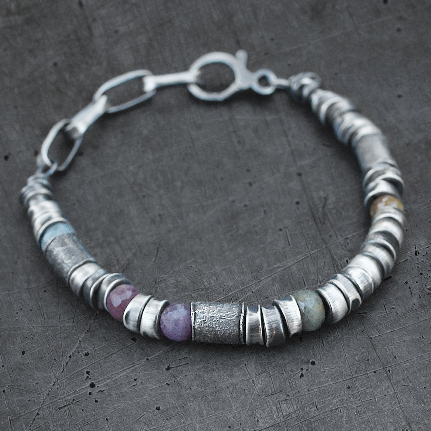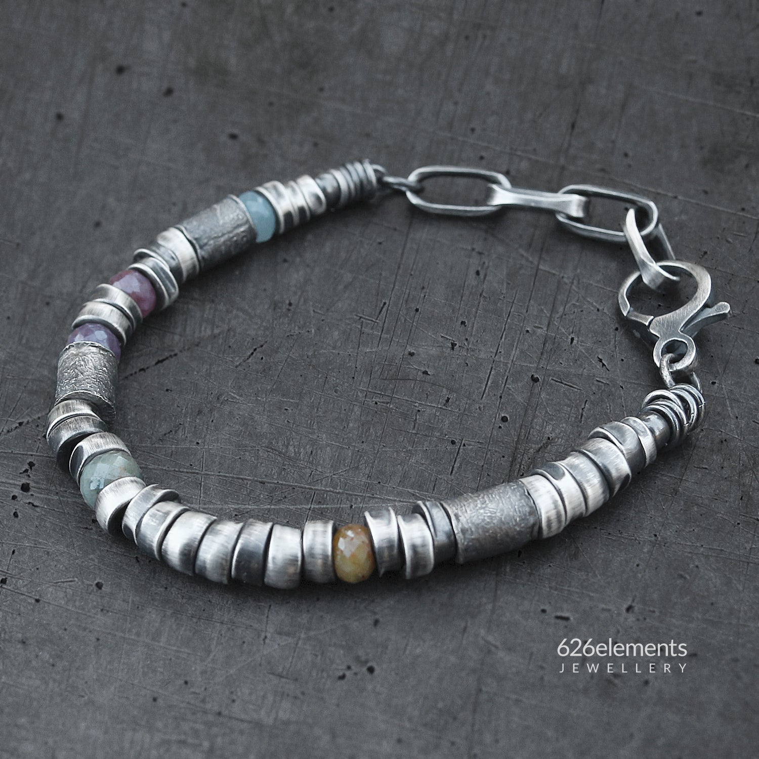 Multi-Coloured Sapphire & Blackened 925 Silver Bracelet