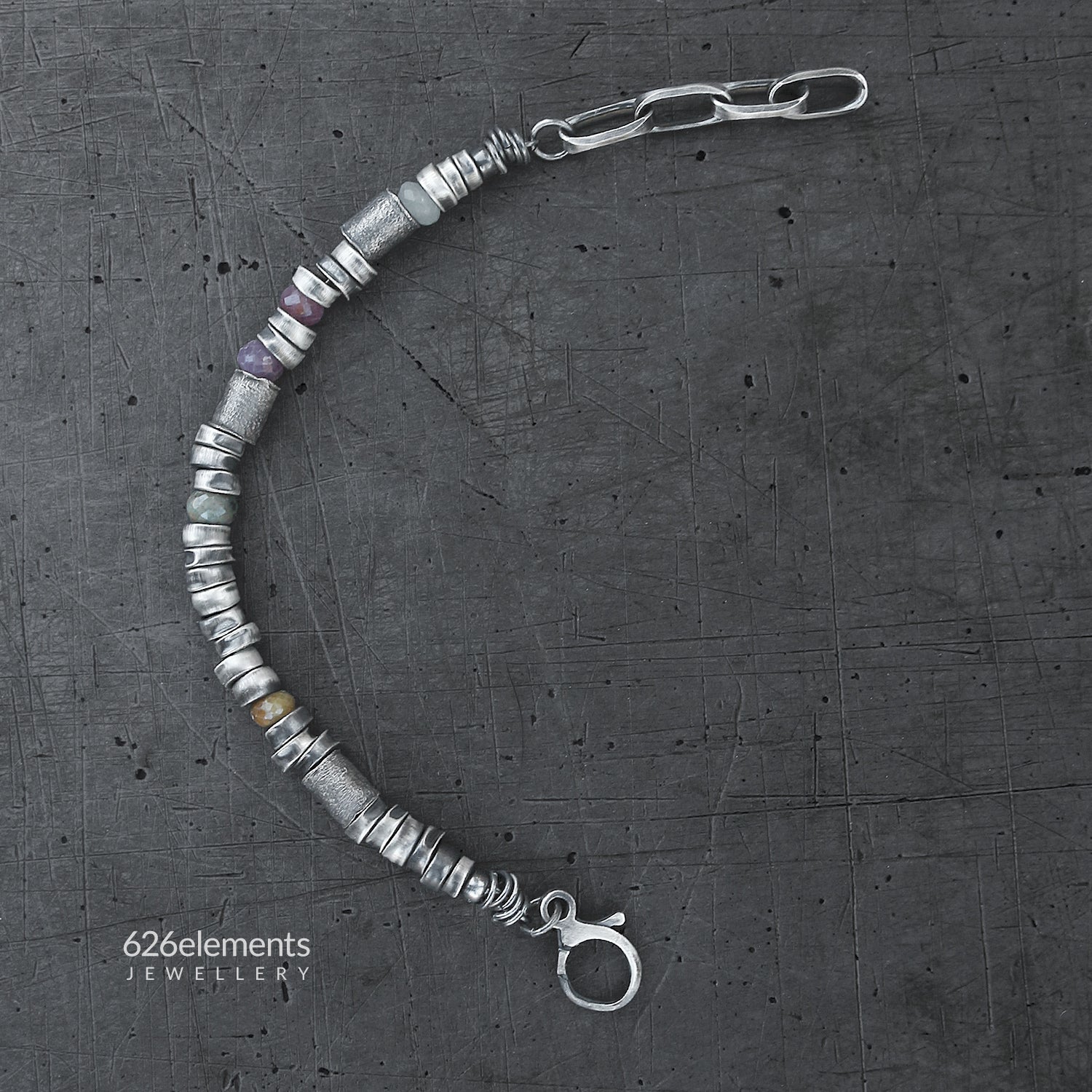 - Sapphire beads and blackened (oxidised) sterling silver (925) bracelet