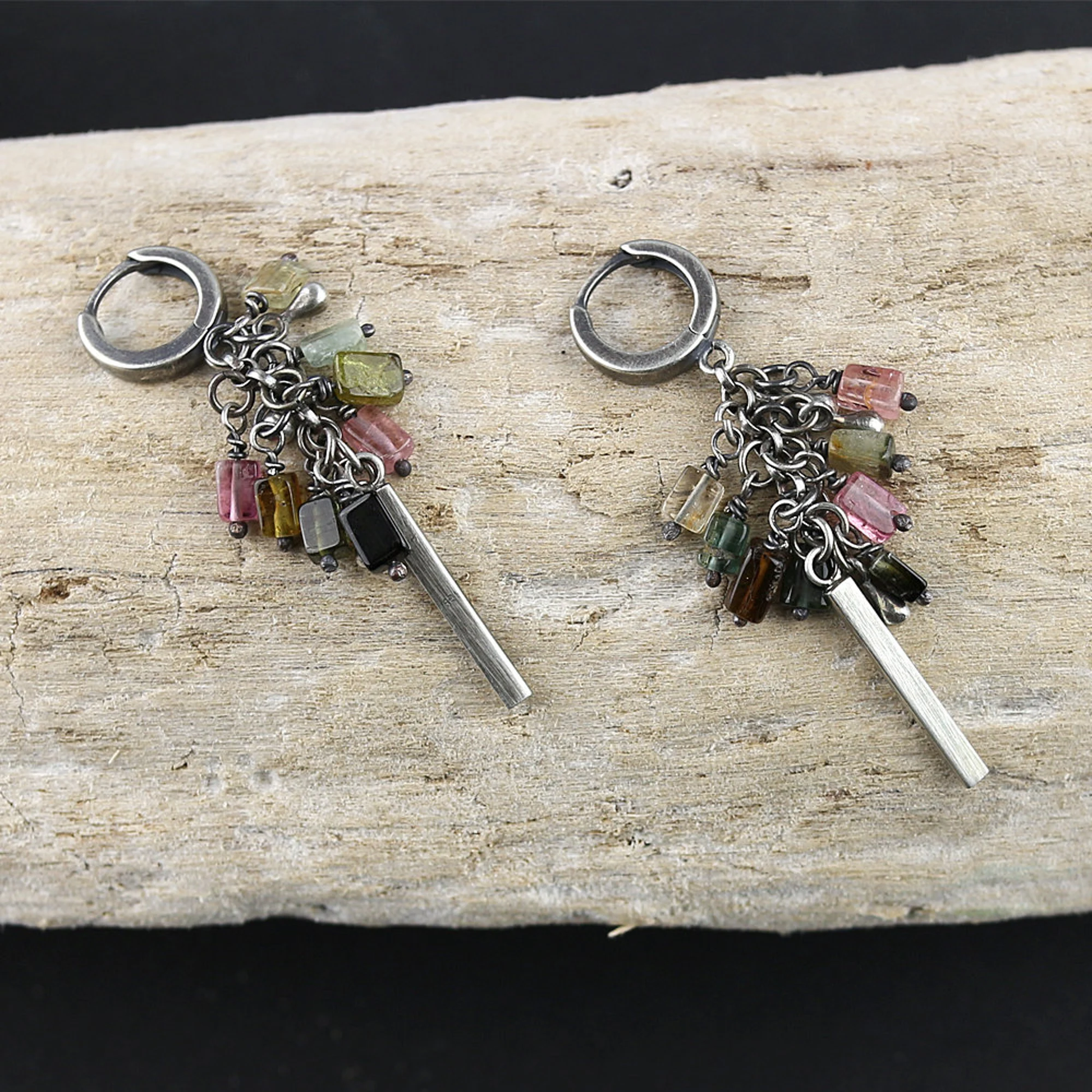 - Unique tourmaline and sterling silver dangle earrings