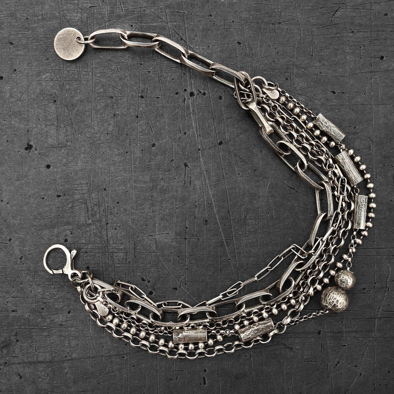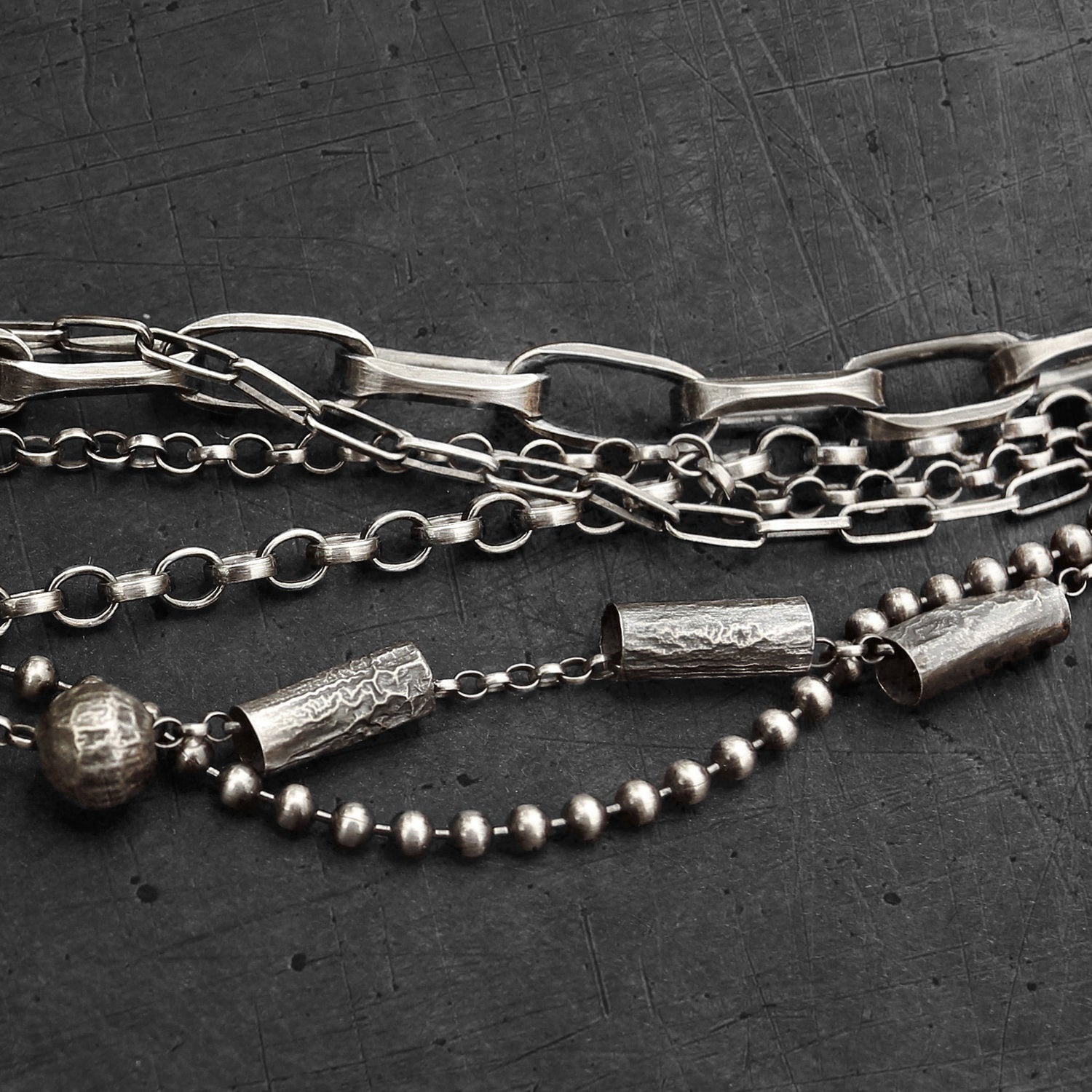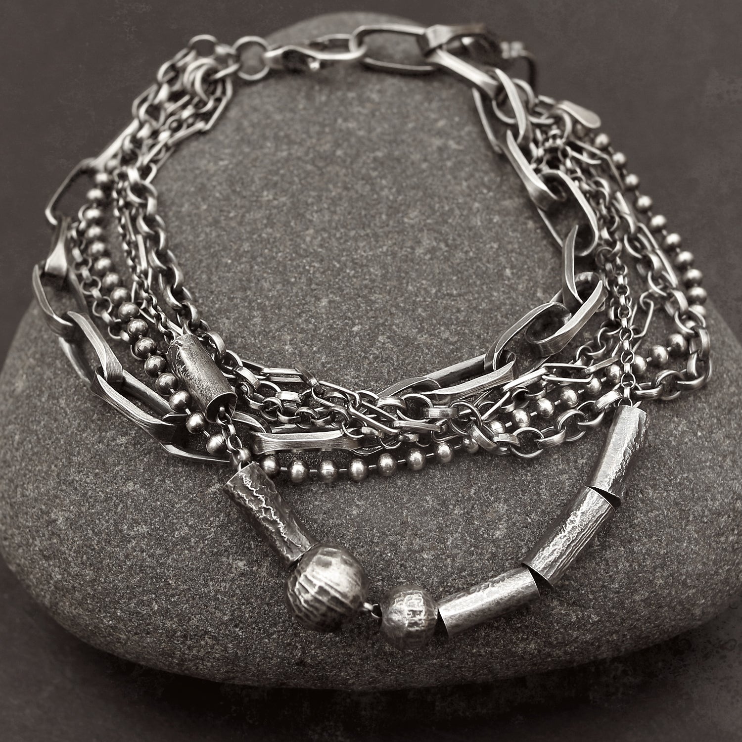 Oxidised Sterling Silver Layered Multi Chain Bracelet