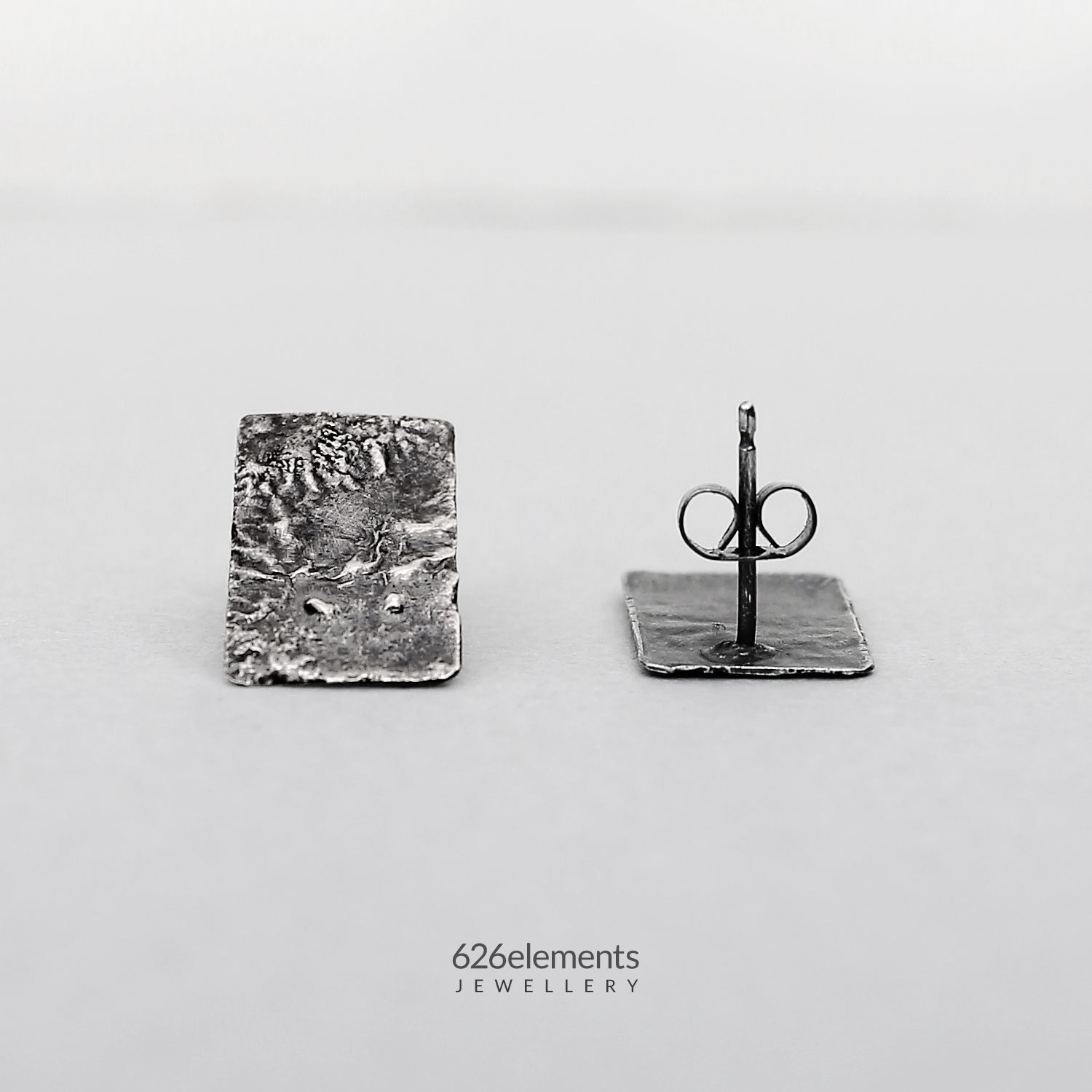 - Handmade, modern, rectangle-shaped 925 silver stud earrings
