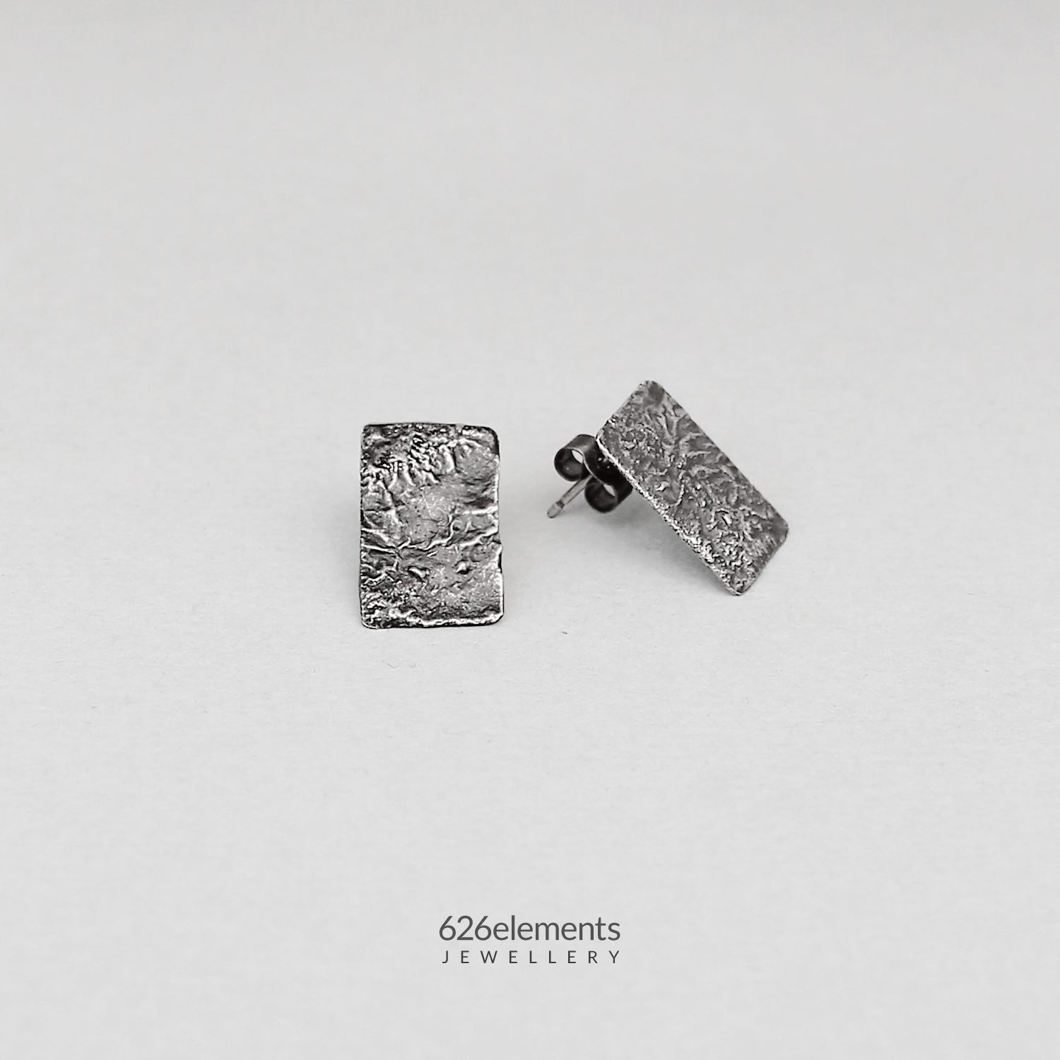 Reticulated Oxidised Sterling Silver Rectangle Stud Earrings