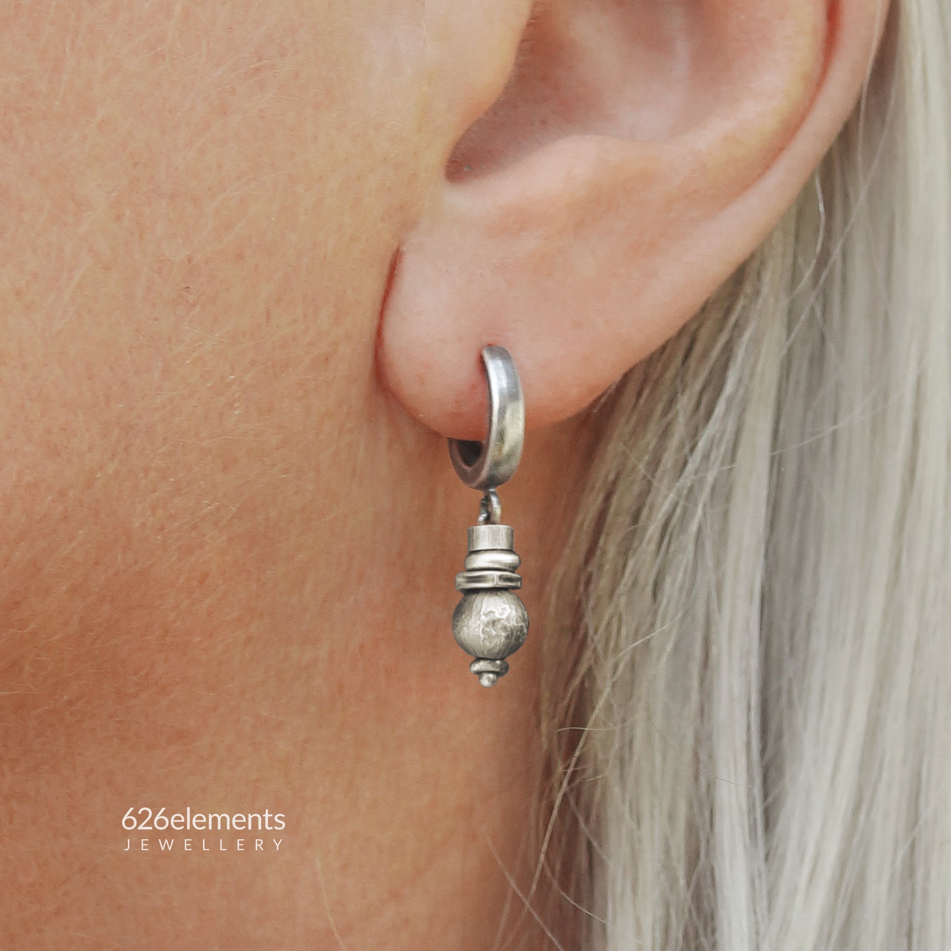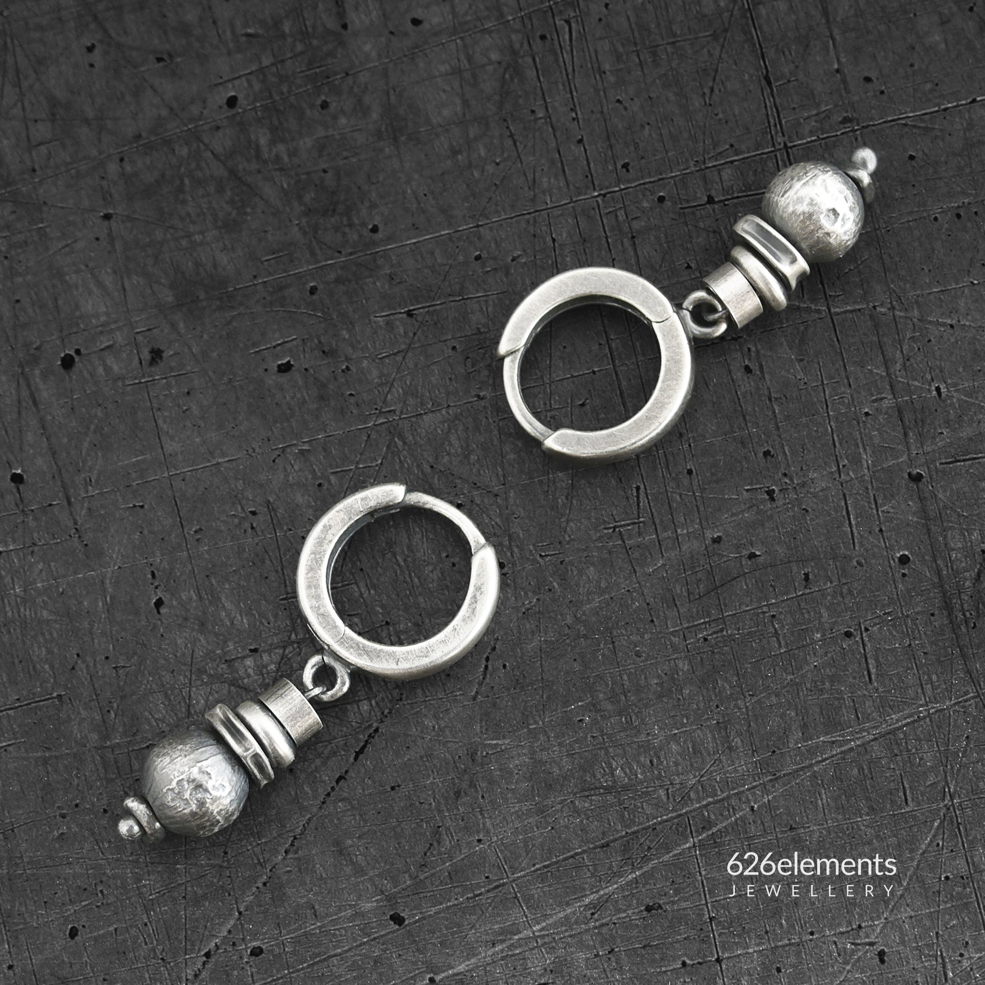 - Small, oxidised (blackened and polished) 925 silver earrings