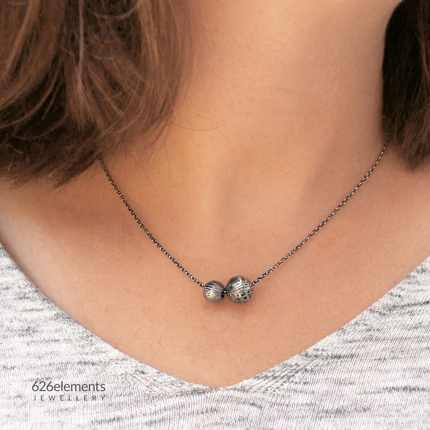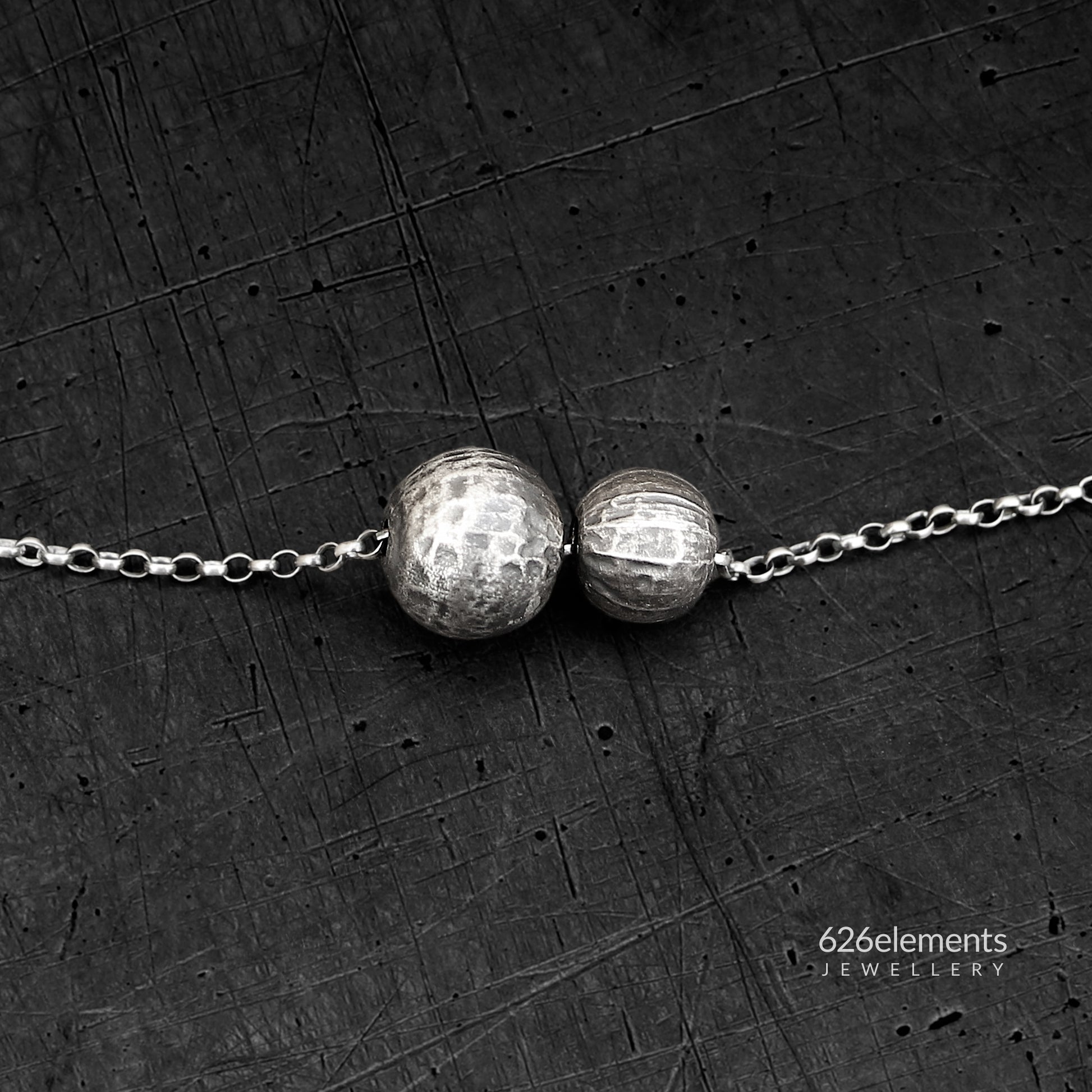 - Two textured (reticulated) and oxidised (blackened and polished) sterling silver balls