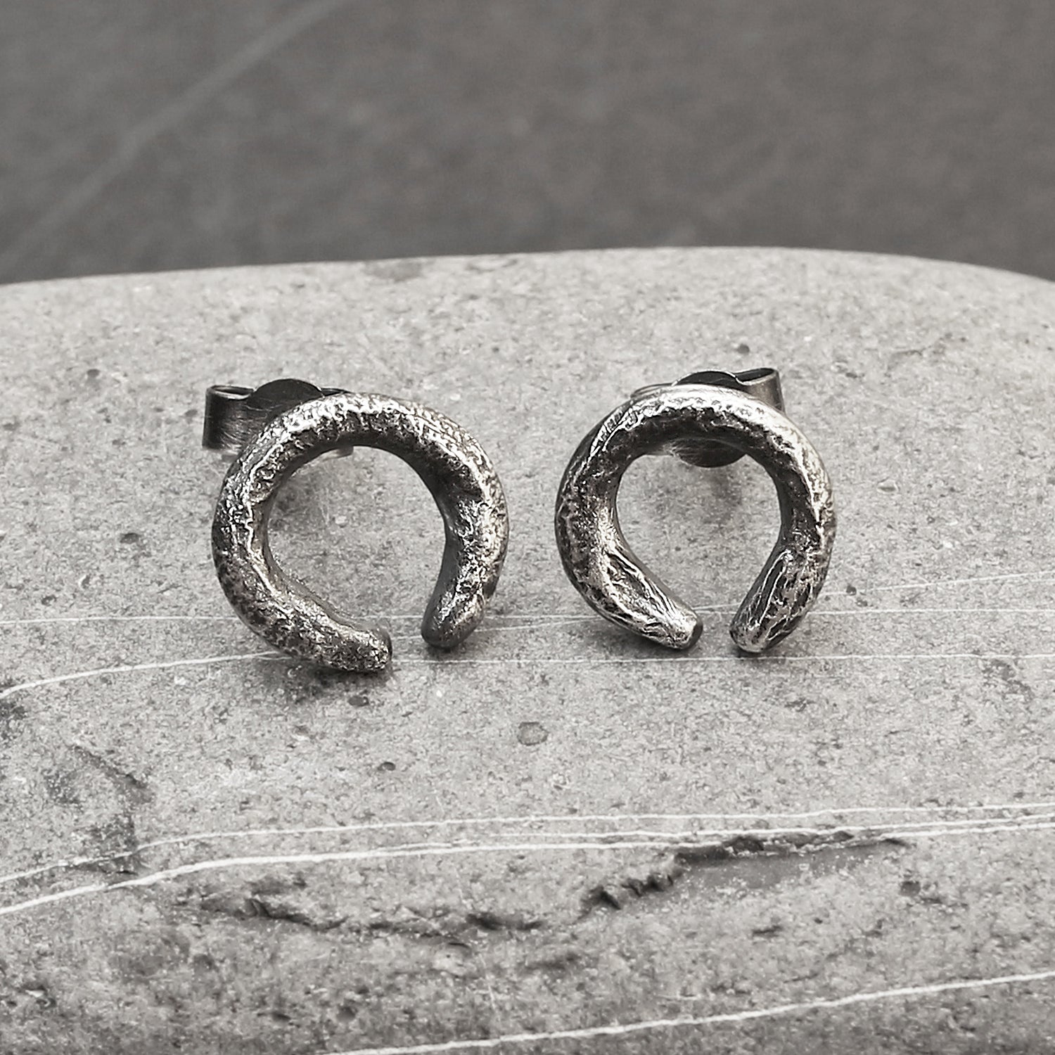 Textured Oxidised Sterling Silver Round Stud Earrings