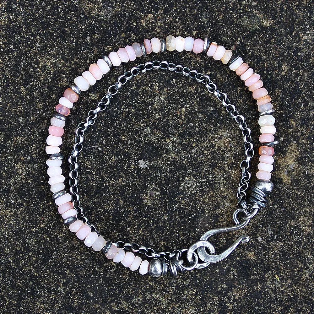 Women's Pink Opal Sterling Silver Chain Bracelet