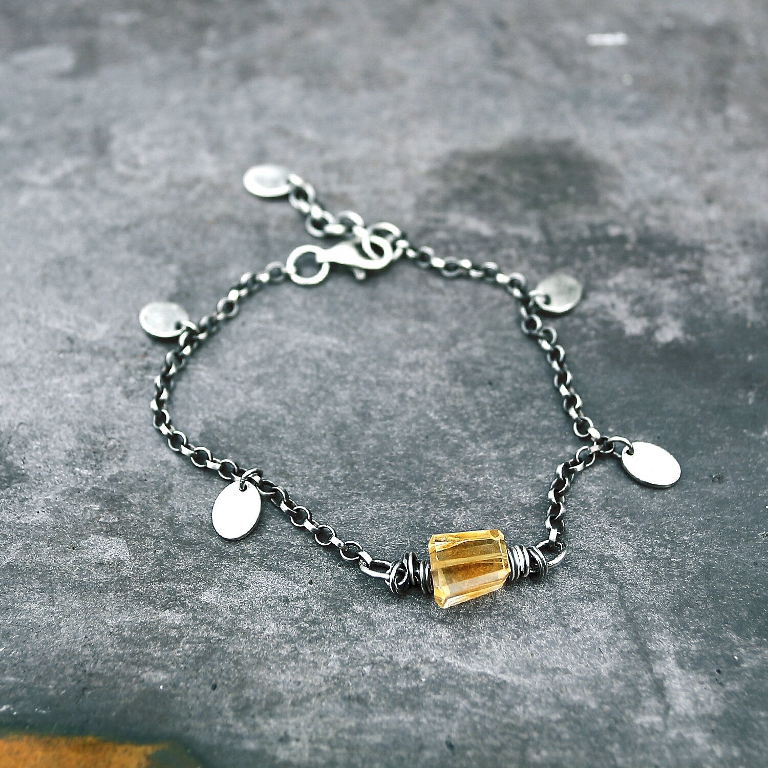 Women's Yellow Citrine Sterling Silver Chain & Oval Discs Bracelet
